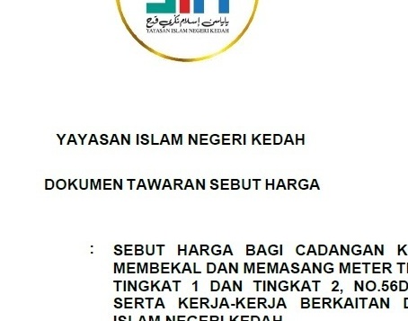 Sebut Harga Bagi Cadangan Kerja-Kerja Membekal Dan Memasang Meter TNB Di No.56E Tingkat 1 Dan Tingkat 2, No.56D Tingkat 2 Serta Kerja-Kerja Berkaitan Di Yayasan Islam Negeri Ked..